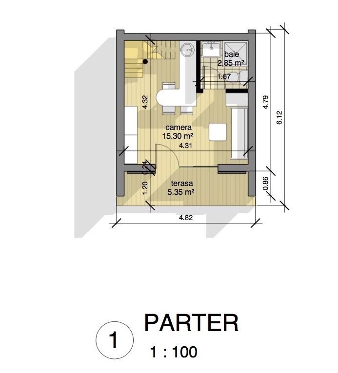 Aria desfasurata (spatii inchise ) = 29,65 mp