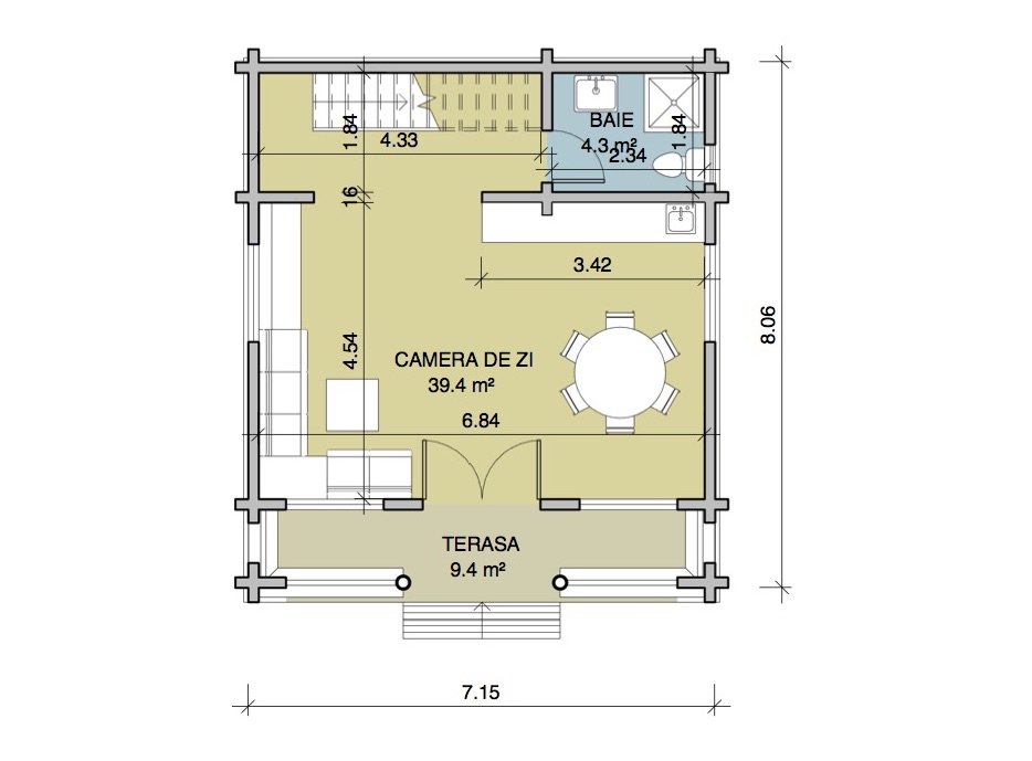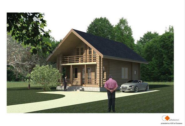Casa pe structura din lemn, dezvoltata pe parter si etaj mansardat